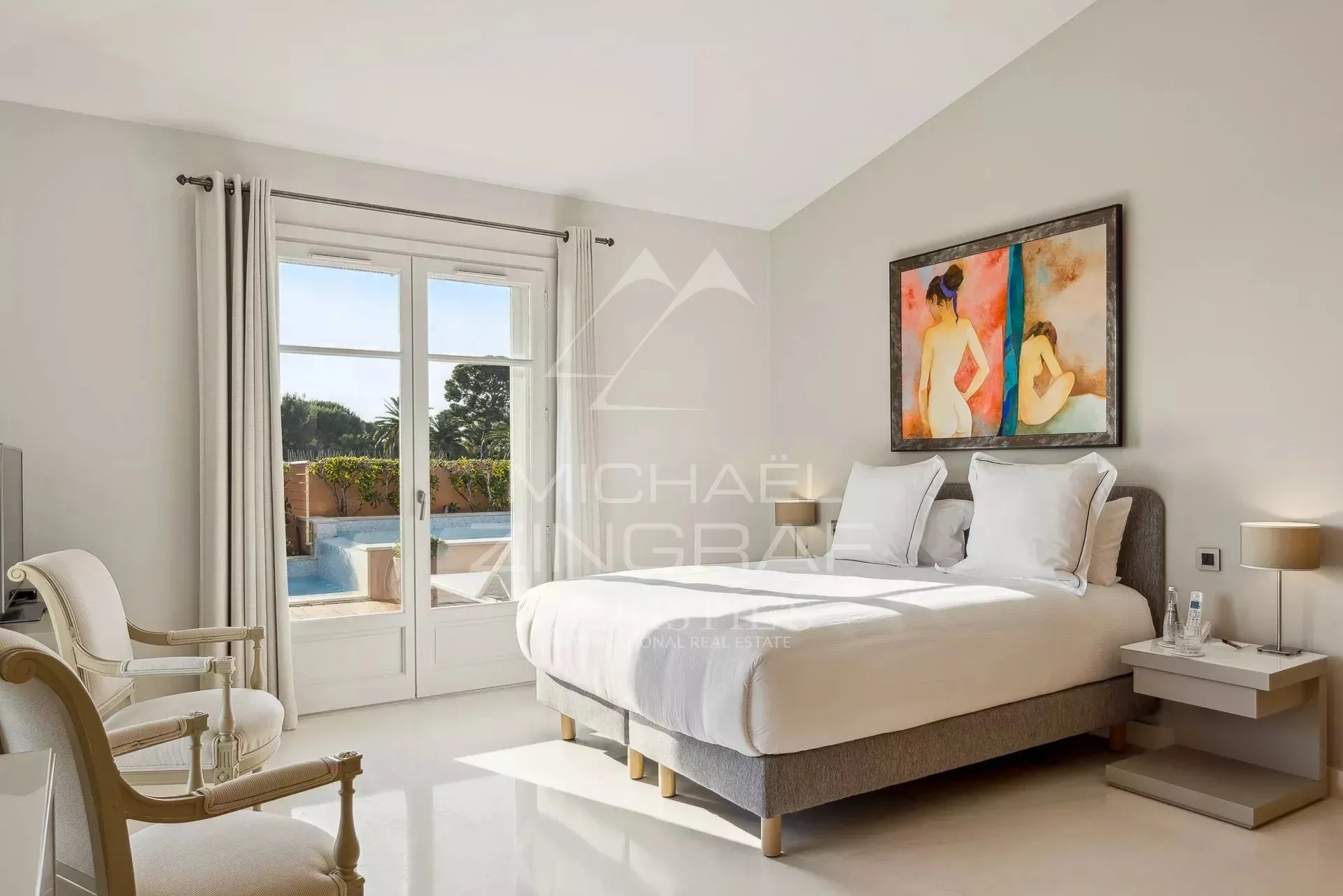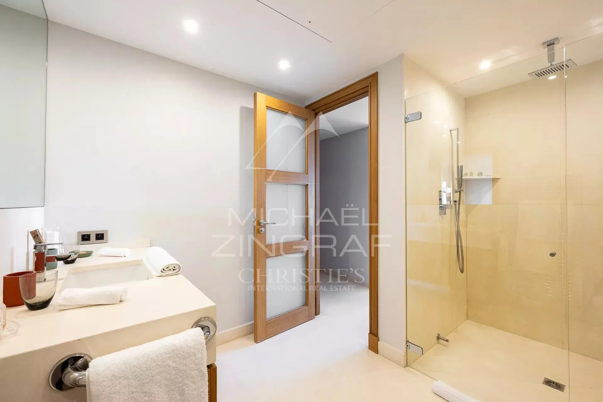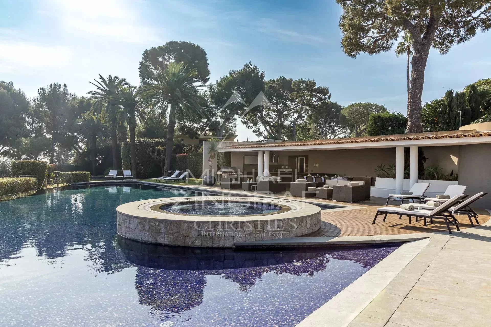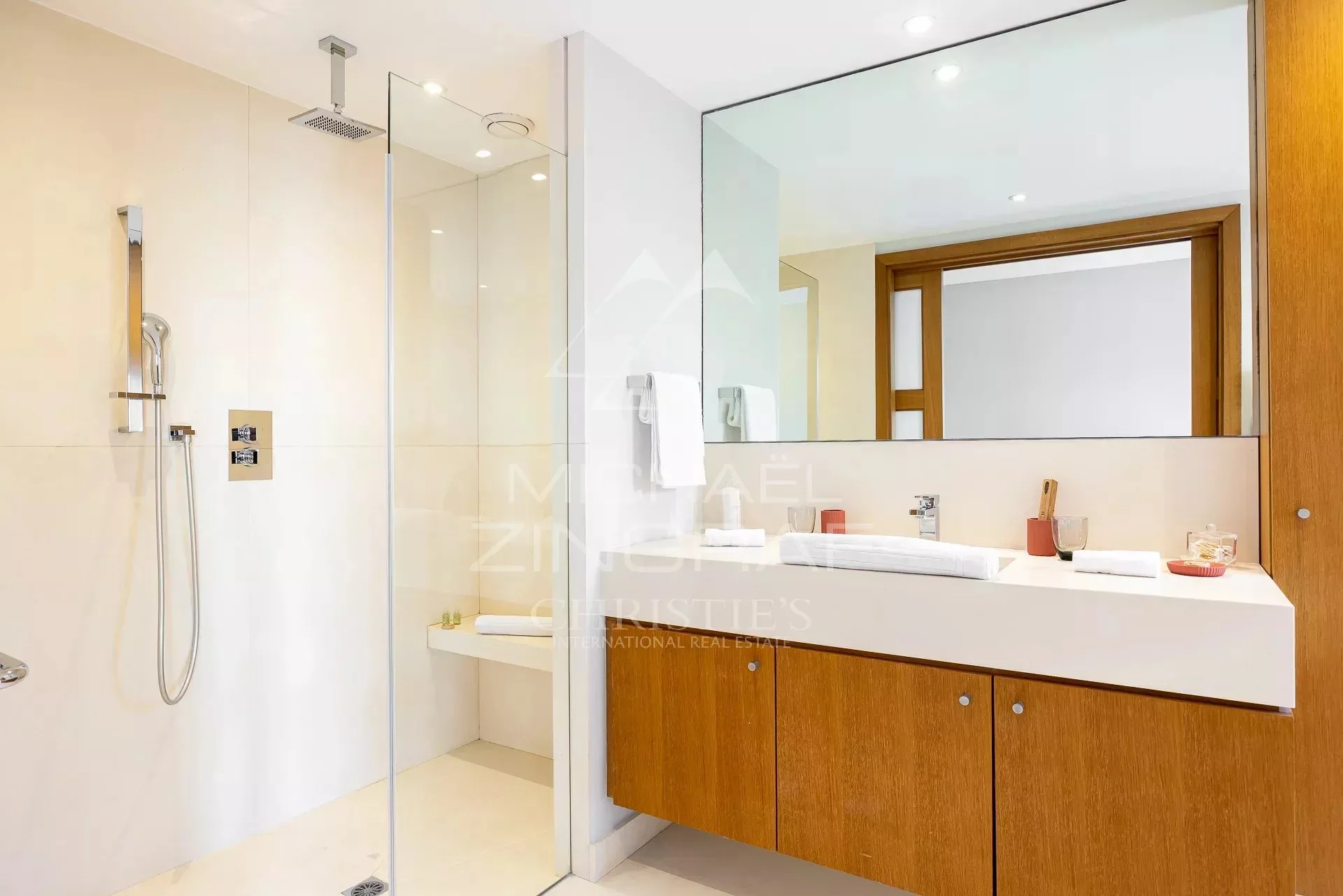 Demeure de prestige d'environ 650 m² de surface habitable avec au rez-de-chaussez: hall d'entrée, vestiaire, chambre d'invités, très lumineux double séjour donnant sur le port de Saint-Jean Cap Ferrat, cuisine. Au premier étage : 5 chambres avec leurs salles de bains et dressings, kitchenette, grandes et fonctionnelle buanderie avec deux machines à laver et 2 sèche-linges. Appartement indépendant avec salon, cuisine ouverte, chambre double avec salle de douche. Piscine, terrasse, parking.