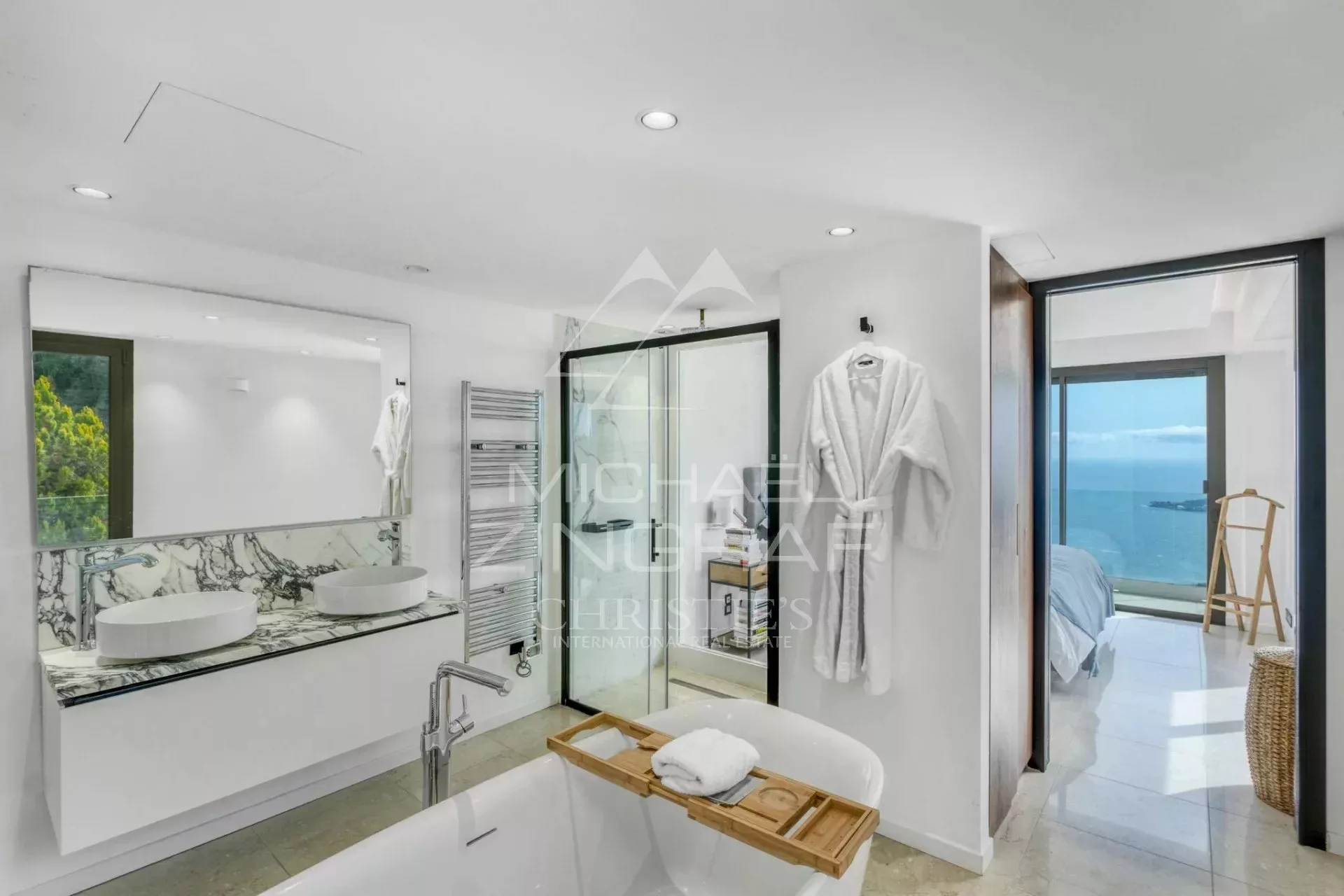 Découvrez cette somptueuse villa récente de plus de 200 m², nichée dans un cadre exclusif, au sein d’une impasse privée et sécurisée. Offrant une vue imprenable sur la mer Méditerranée et la presqu’île de Saint-Jean-Cap-Ferrat, cette propriété d’exception promet un séjour inoubliable, alliant confort, élégance et sérénité.