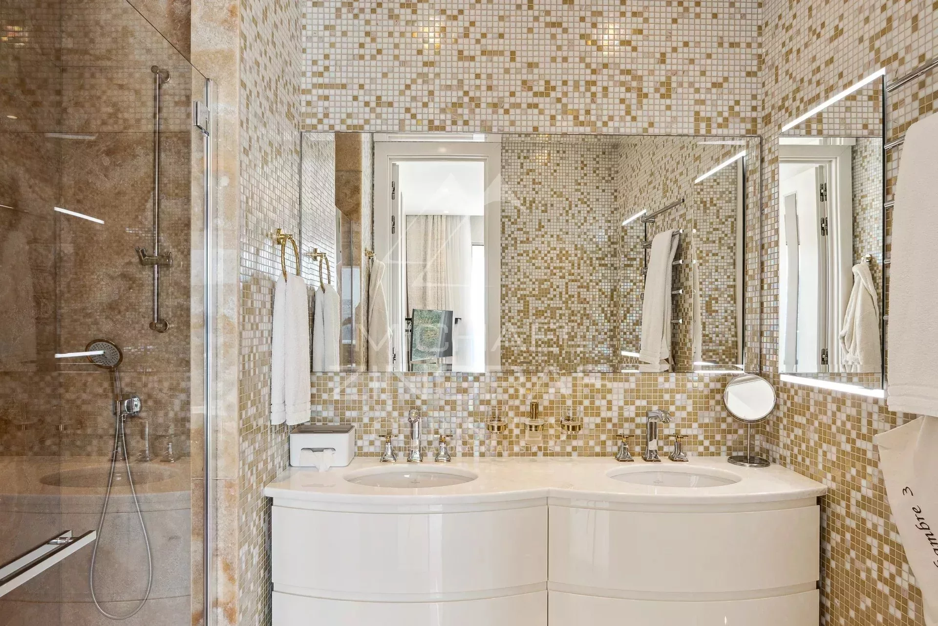 À l’extérieur, la villa dispose de : – terrasses aménagées,