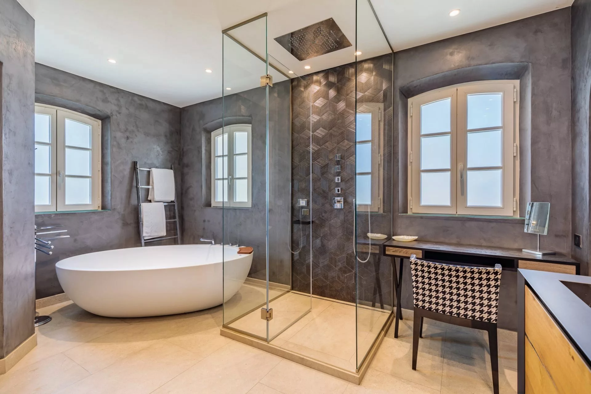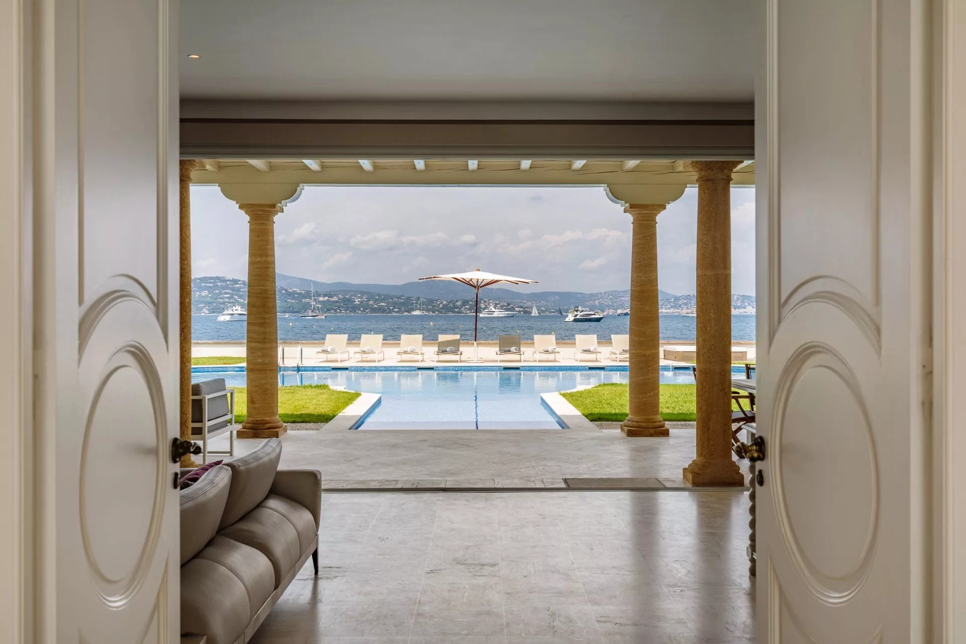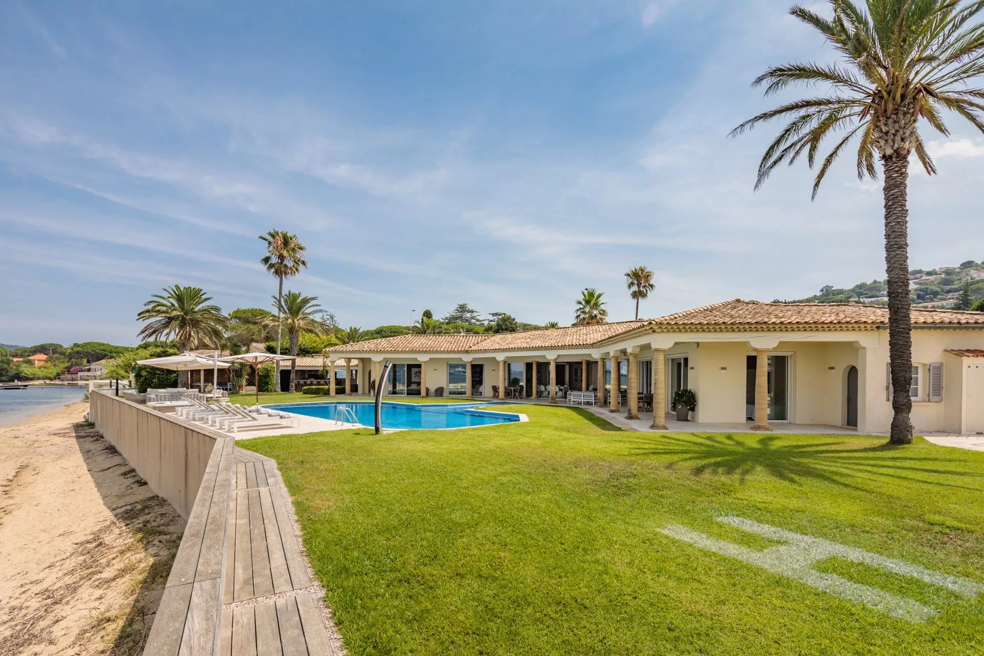 Magnifique villa pied dans l'eau de style toscan offre un accès direct à une charmante petite plage située à quelques minutes de Saint Tropez.