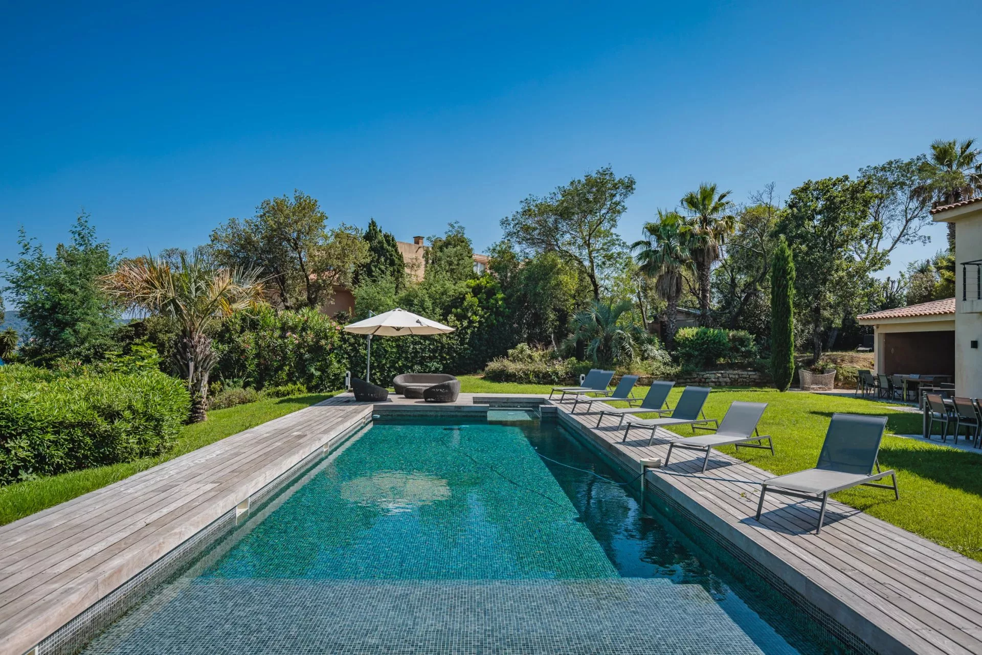 Cette villa contemporaine, située dans le grand domaine de Beauvallon, face au Golf de Saint Tropez, offre un accès direct à la plage.