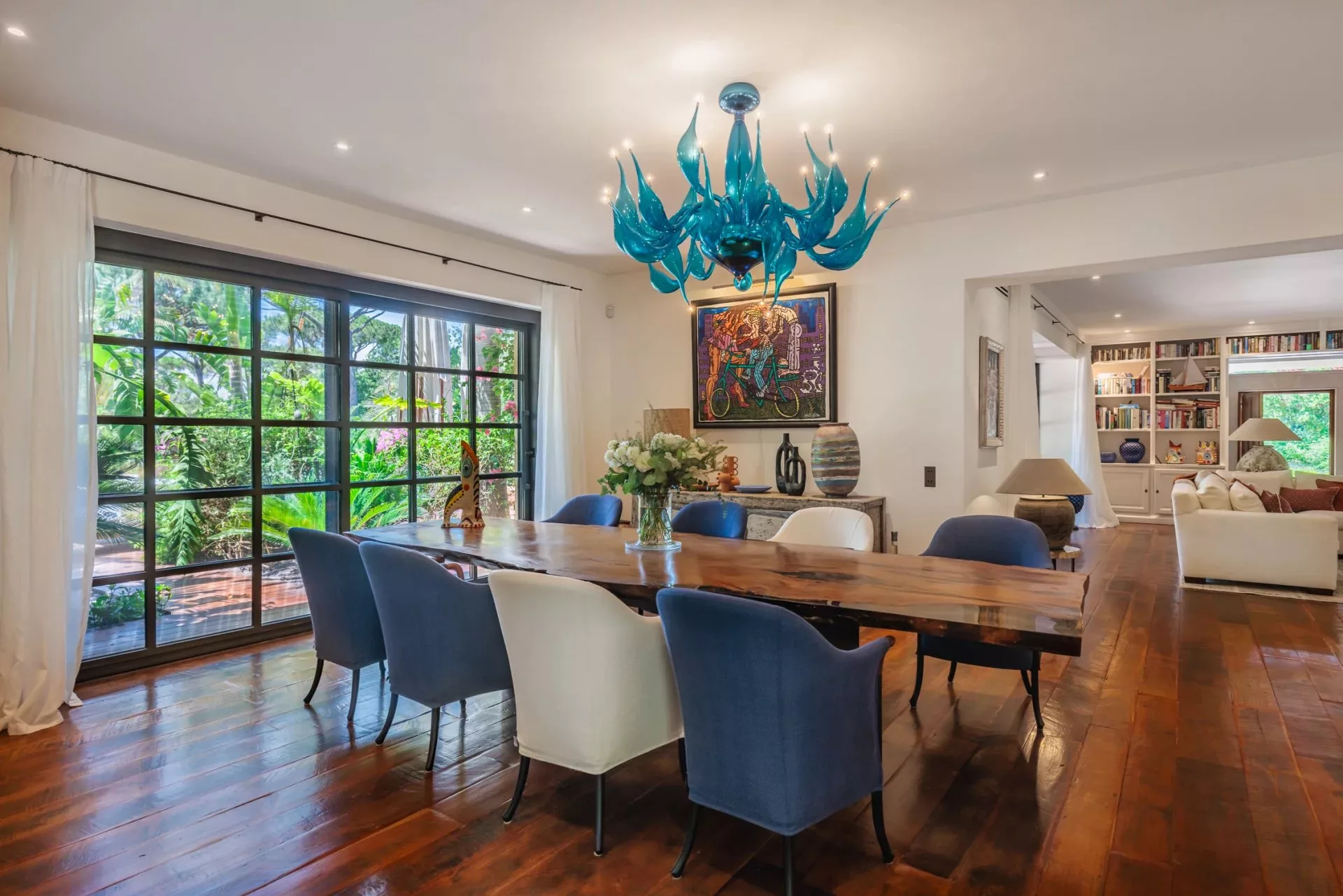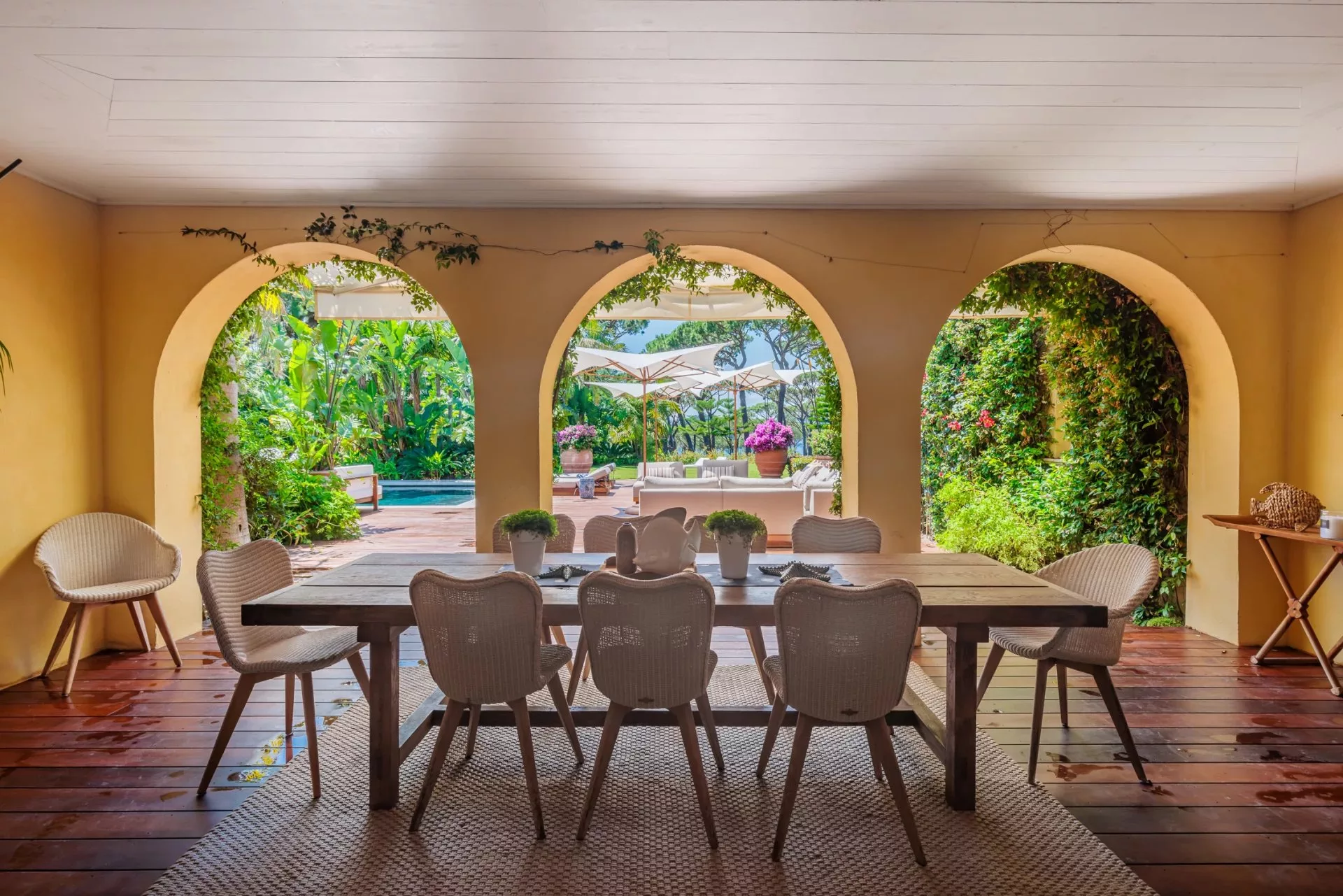 Dans un cadre paradisiaque, cette superbe propriété avec vue mer et un jardin luxuriant complanté d'arbres exotiques, offre un accès direct à la plage des Canoubiers.