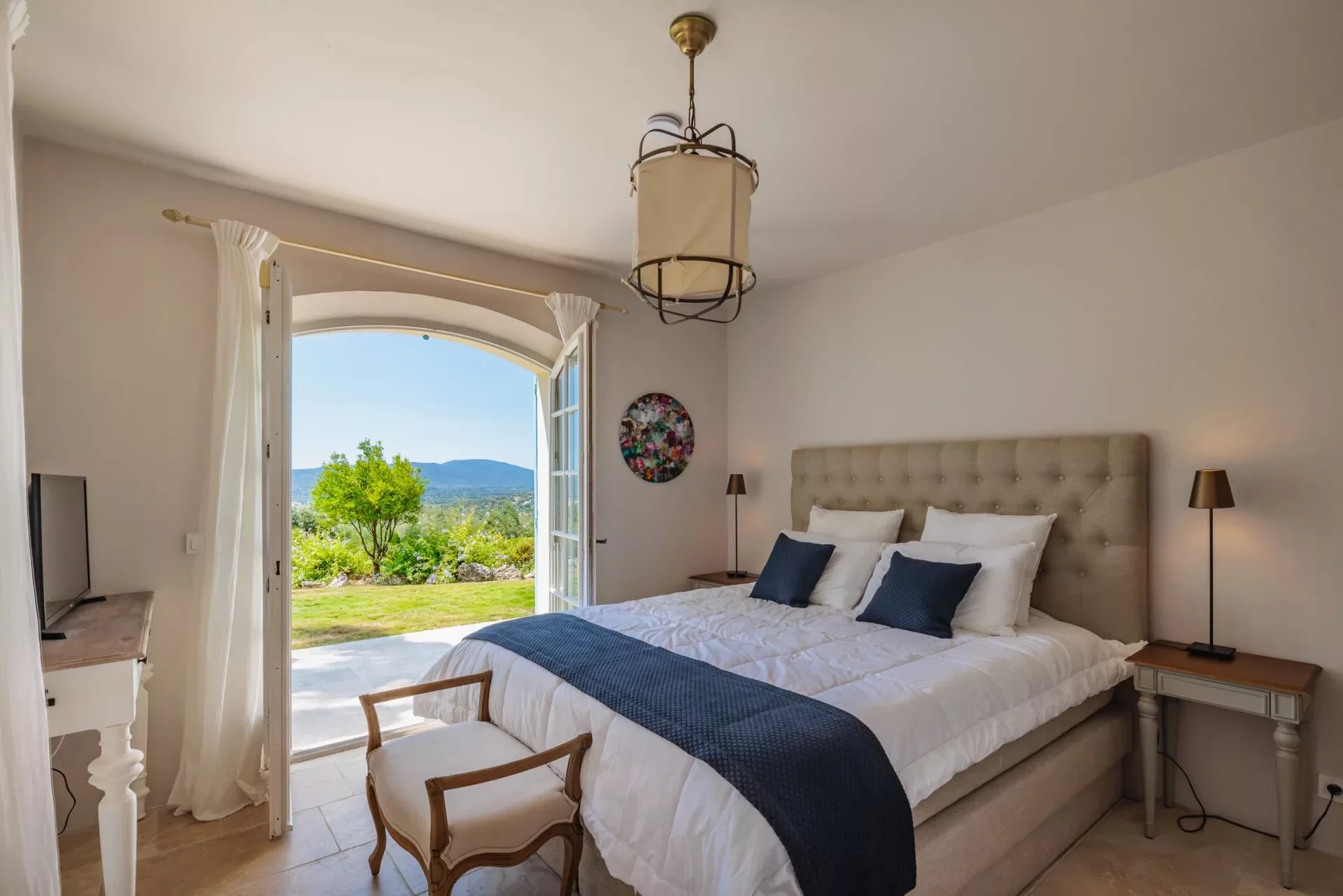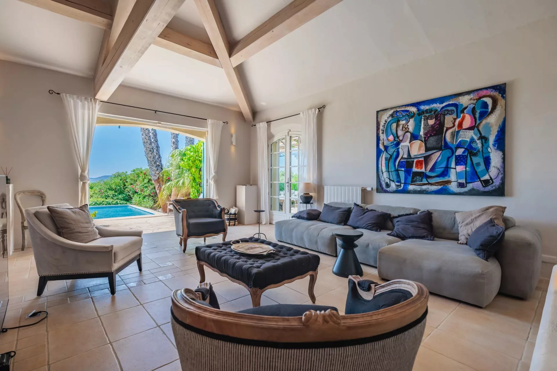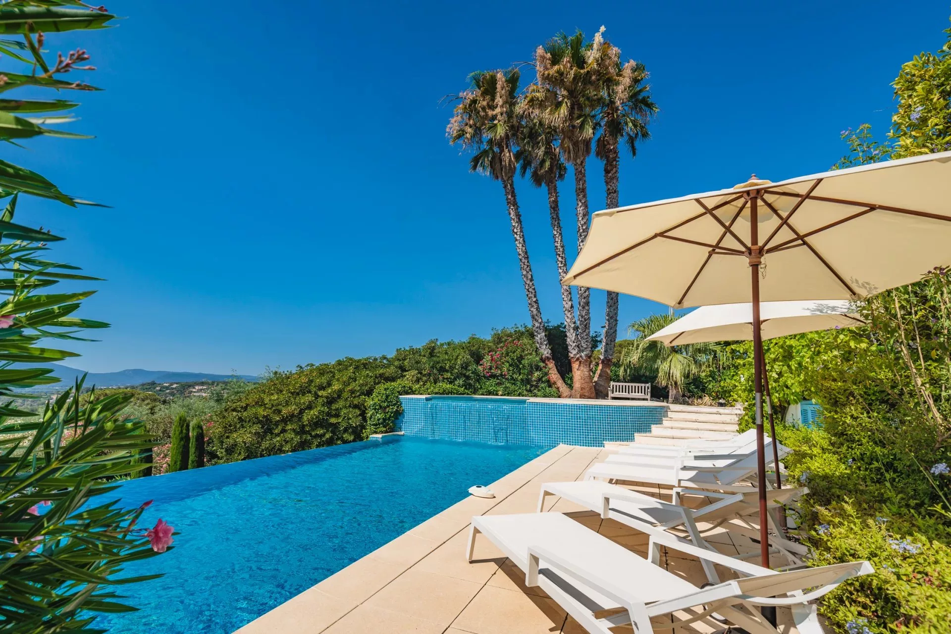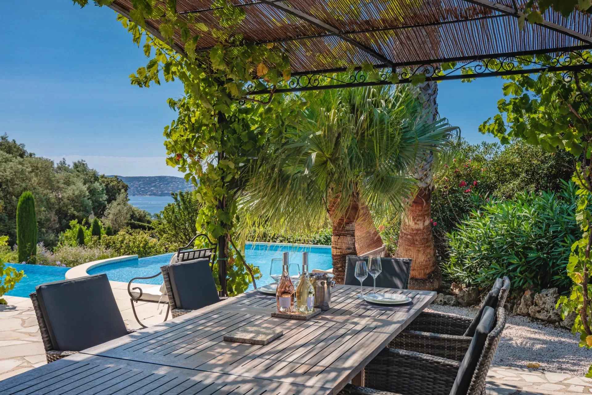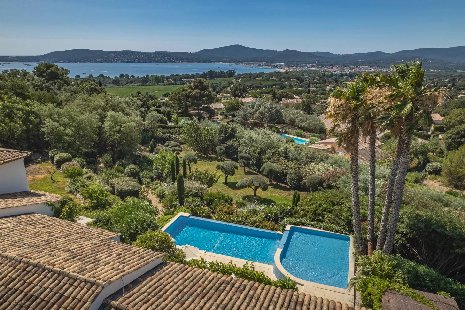 Cette jolie villa provençale récemment classée 5 étoiles, située sur les hauteurs de Grimaud, avec sa piscine chauffée à débordement et son jardin arboré est composée d'un salon, salle à manger, une cuisine, 5 chambres avec 5 salles de bain ou douche et dispose d'une belle vue mer.