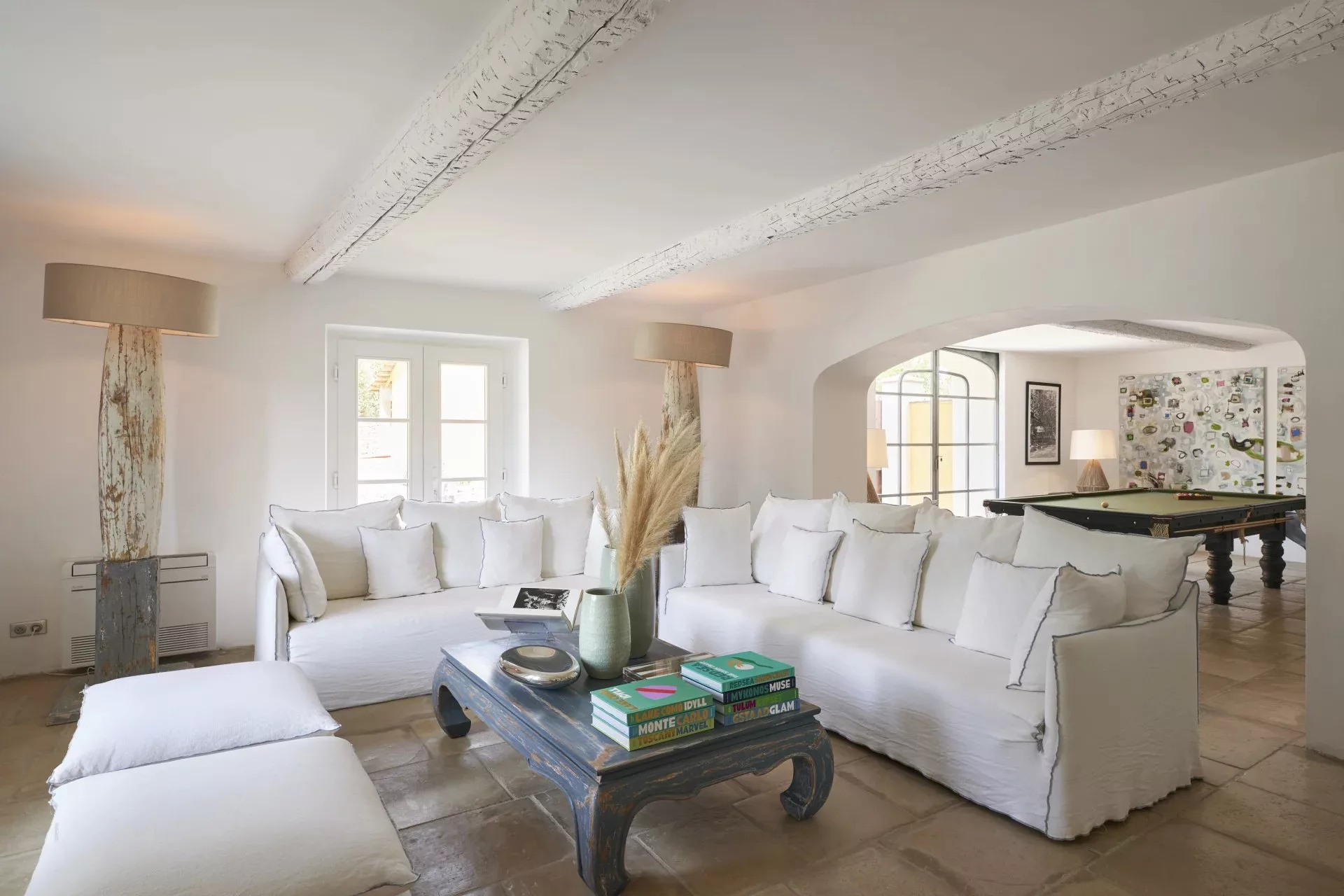Récemment rénovée, cette propriété de charme se compose d'une cuisine équipée, d'une grande pièce de vie disposant de 3 coins salon, dont un salon de télévision et billard, d'un espace bureau, de 7 chambres et 5 salles de bains.