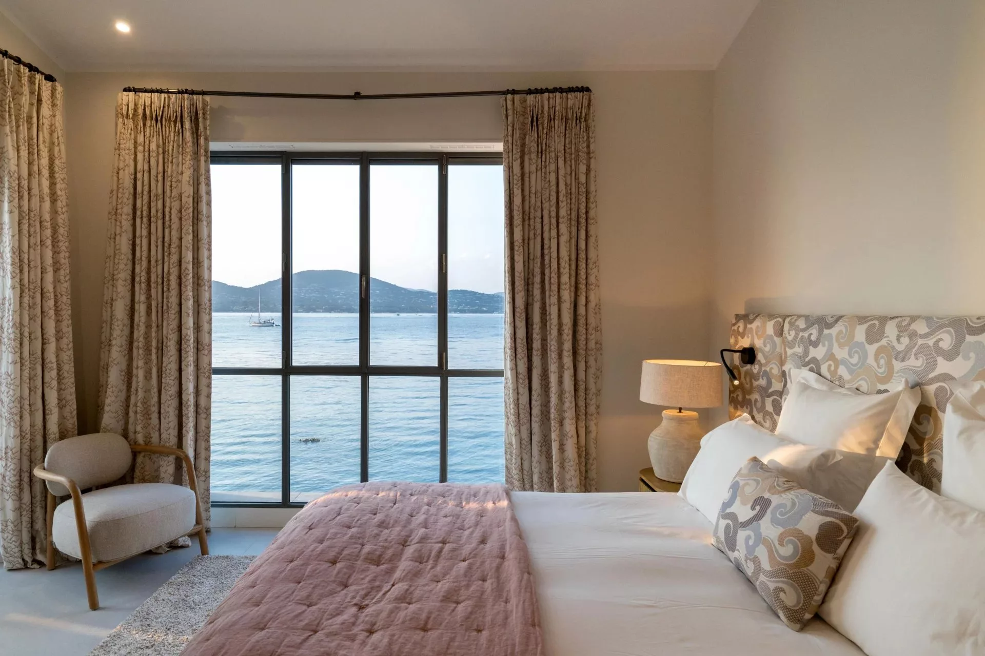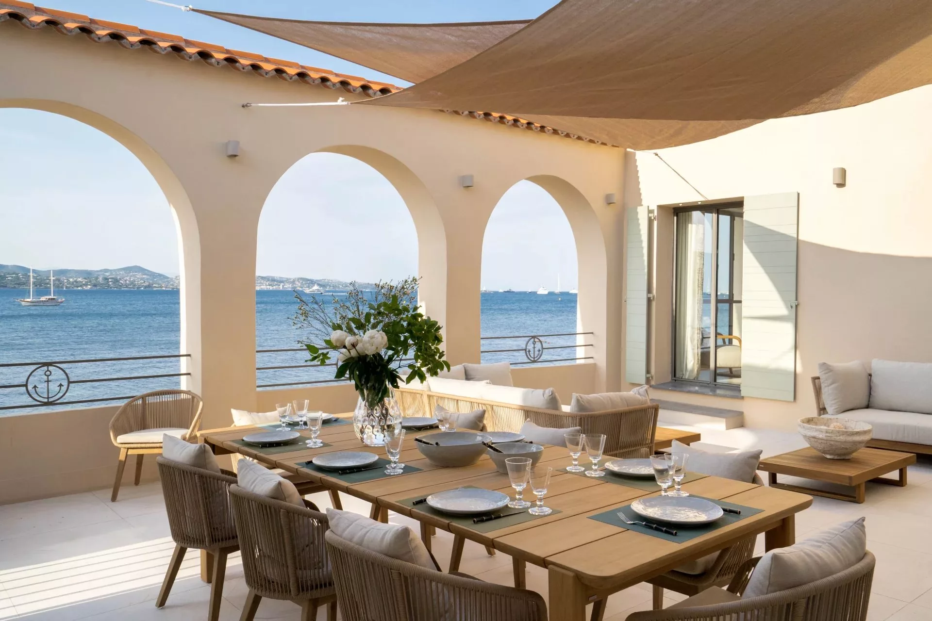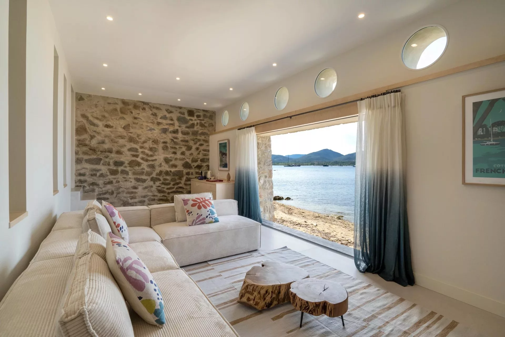 Les pièces de vie sont lumineuses et offrent une vue imprenable sur la mer. La belle hauteur sous plafond donne une sensation d'espace et de liberté. La décoration chic et moderne est pensée avec goût, apportant une touche de sophistication supplémentaire à cette villa de prestige.