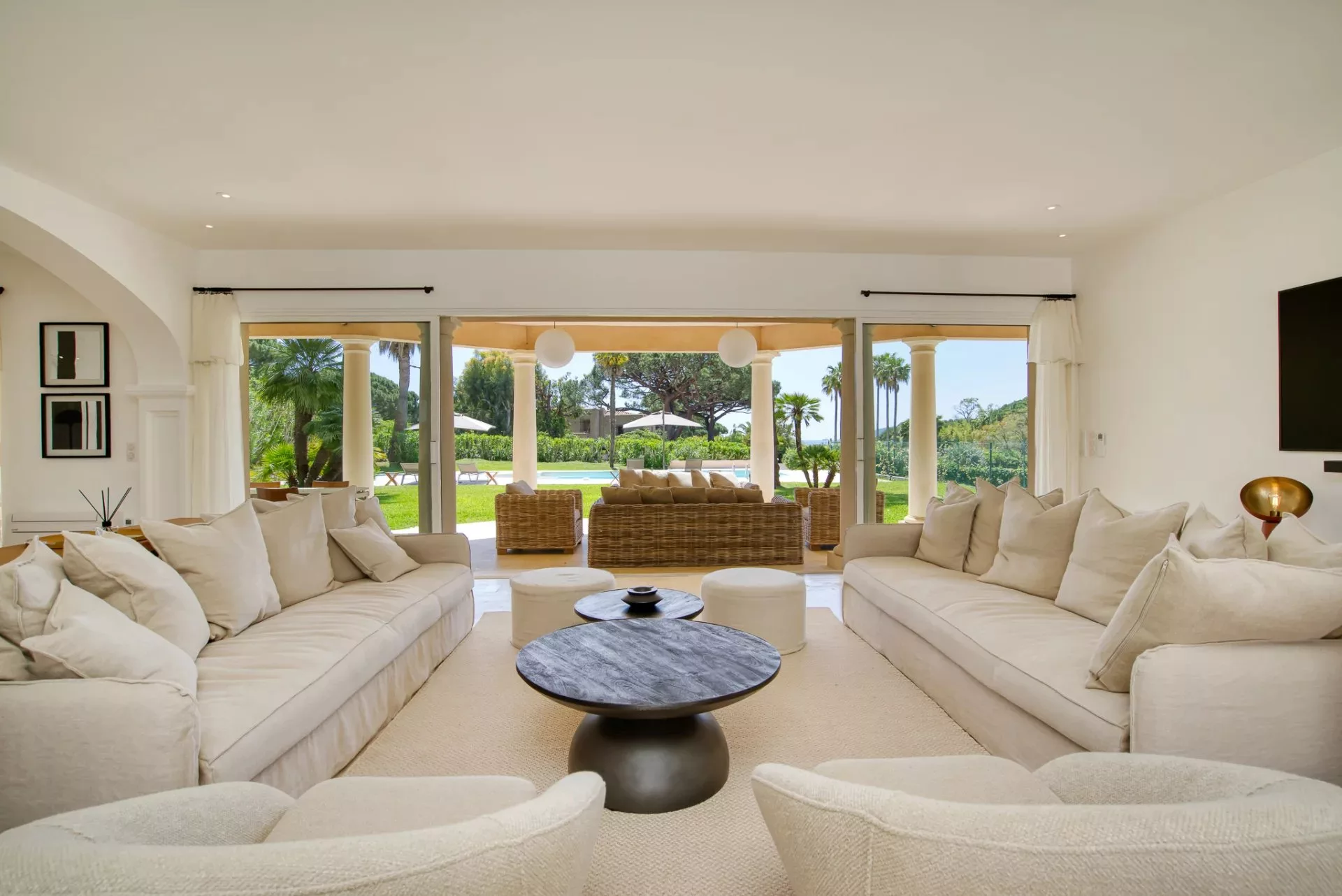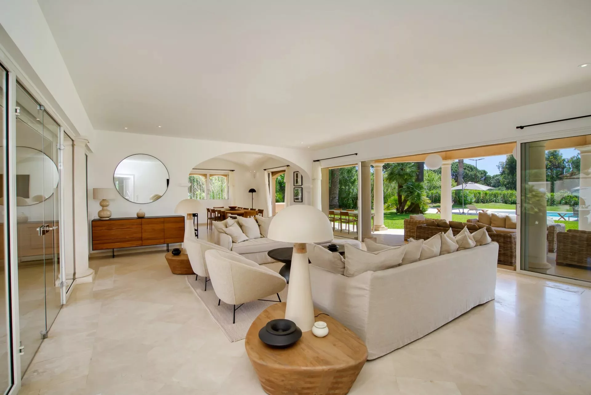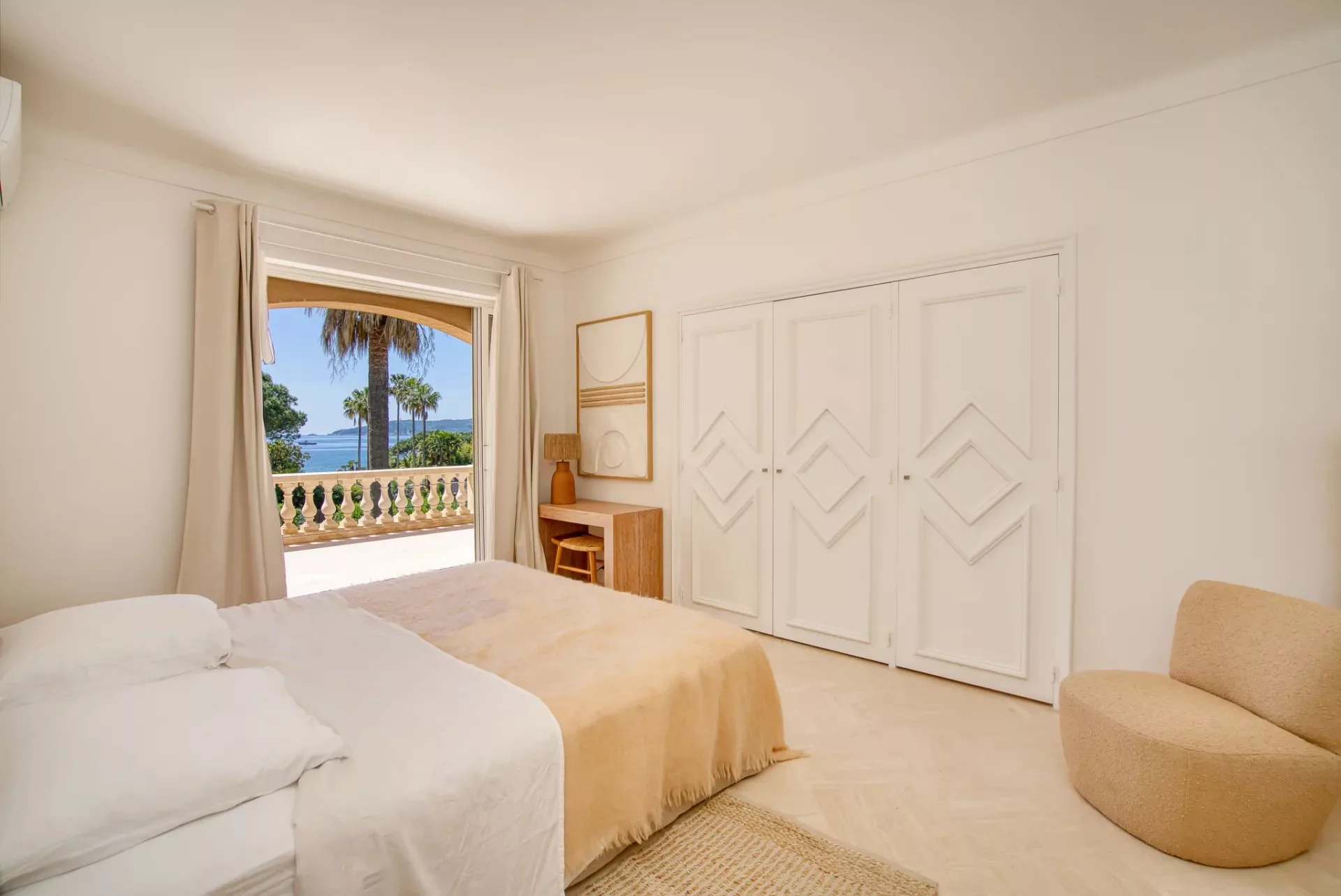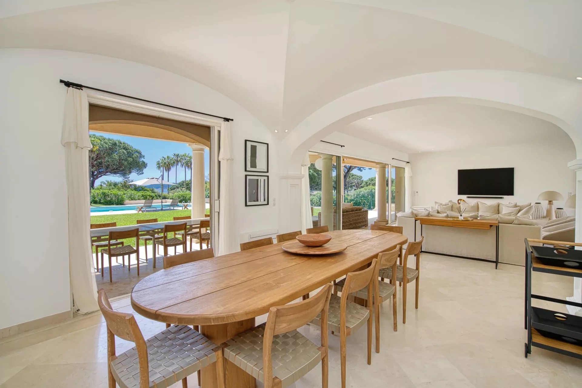 Entièrement rénovée, elle possède un salon lumineux et une salle à manger ouverts sur la terrasse, une cuisine entièrement équipée, 6 chambres, 6 salle de bains, une chambre d'appoint et une chambre de service.