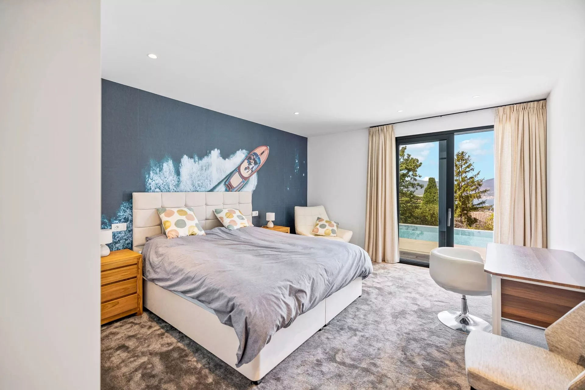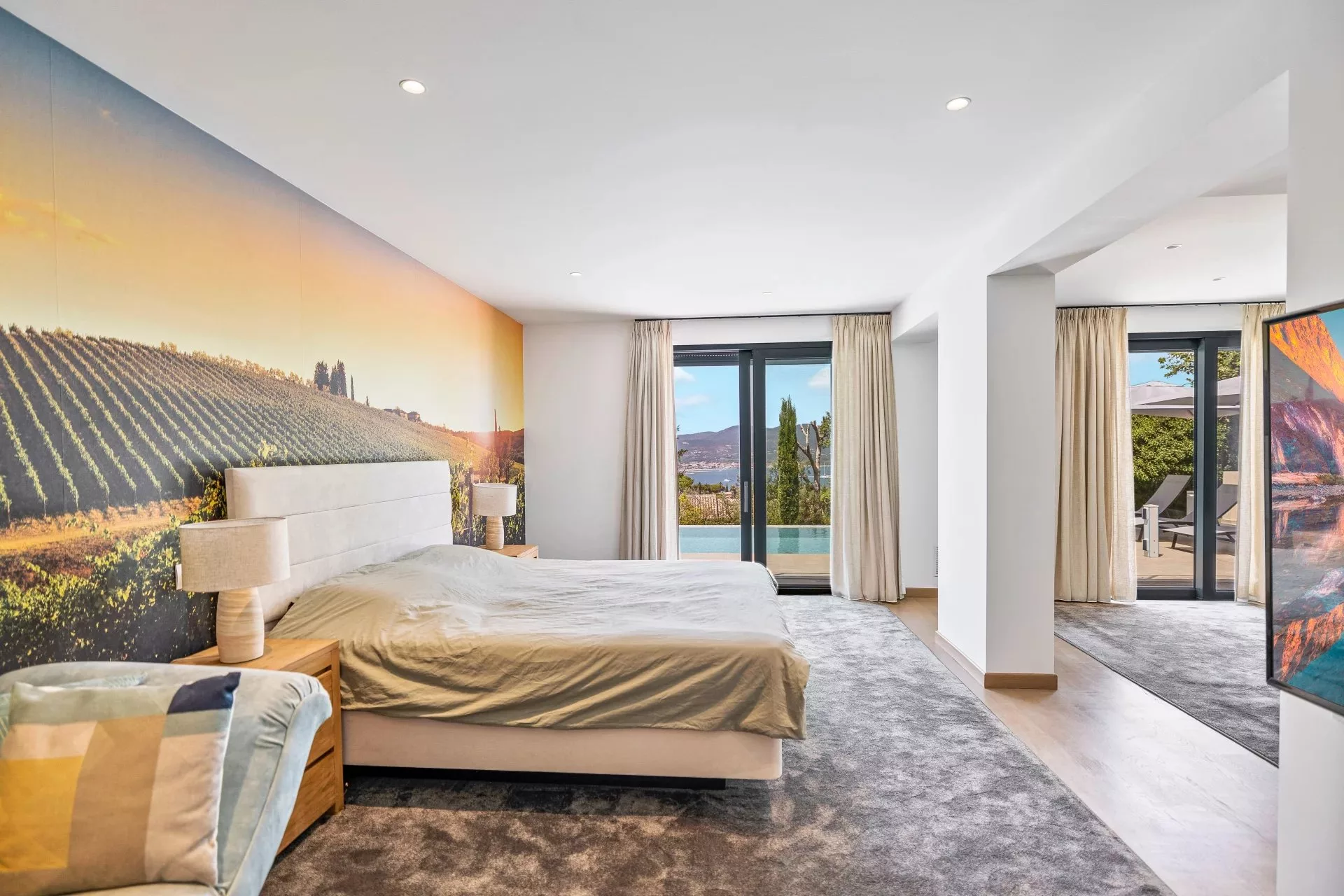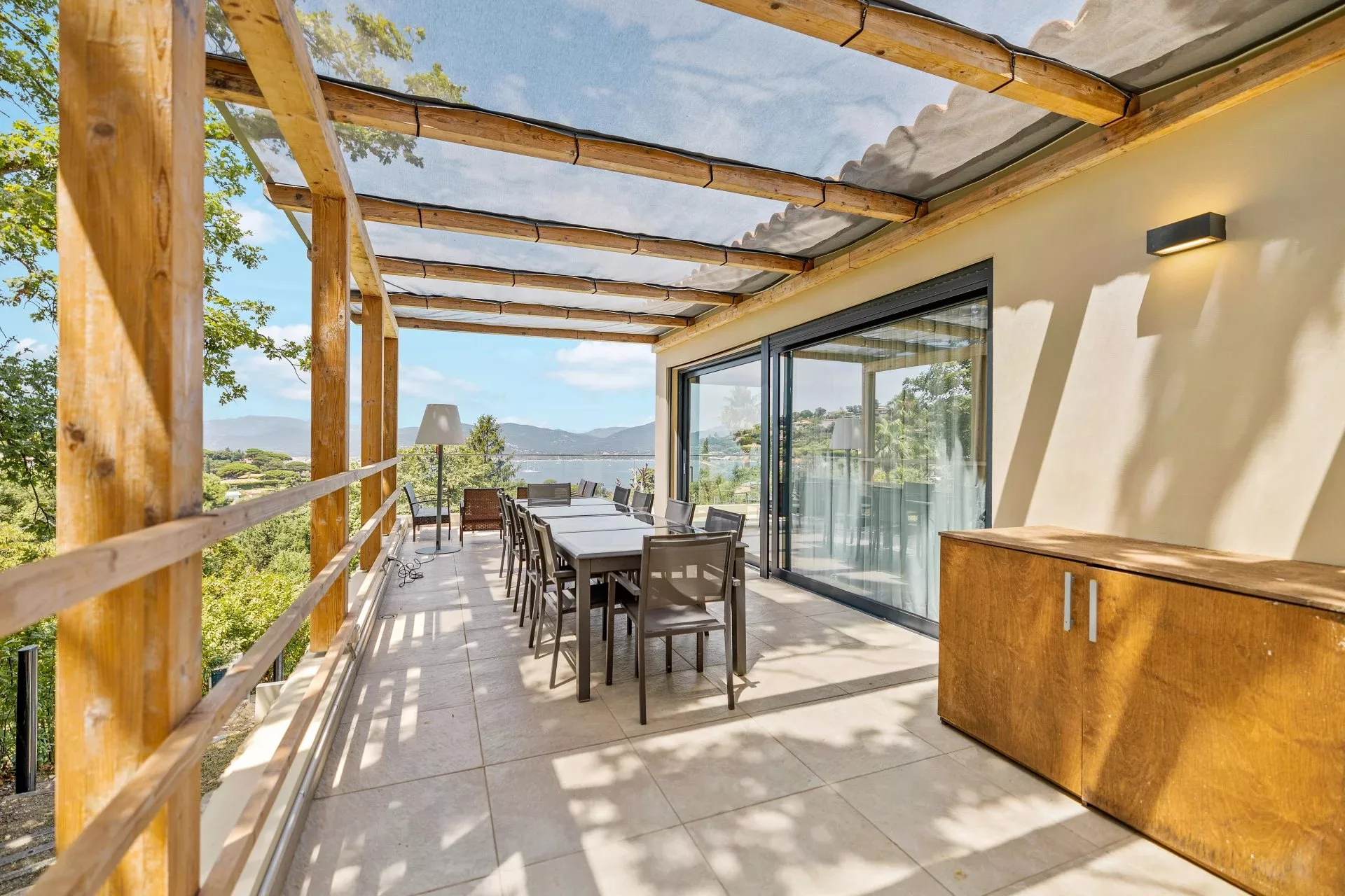 Située au calme dans les hauteurs de la résidence sécurisée Sinopolis, et à quelques minutes de Saint-Tropez, cette magnifique villa neuve offre une merveilleuse vue sur la mer.