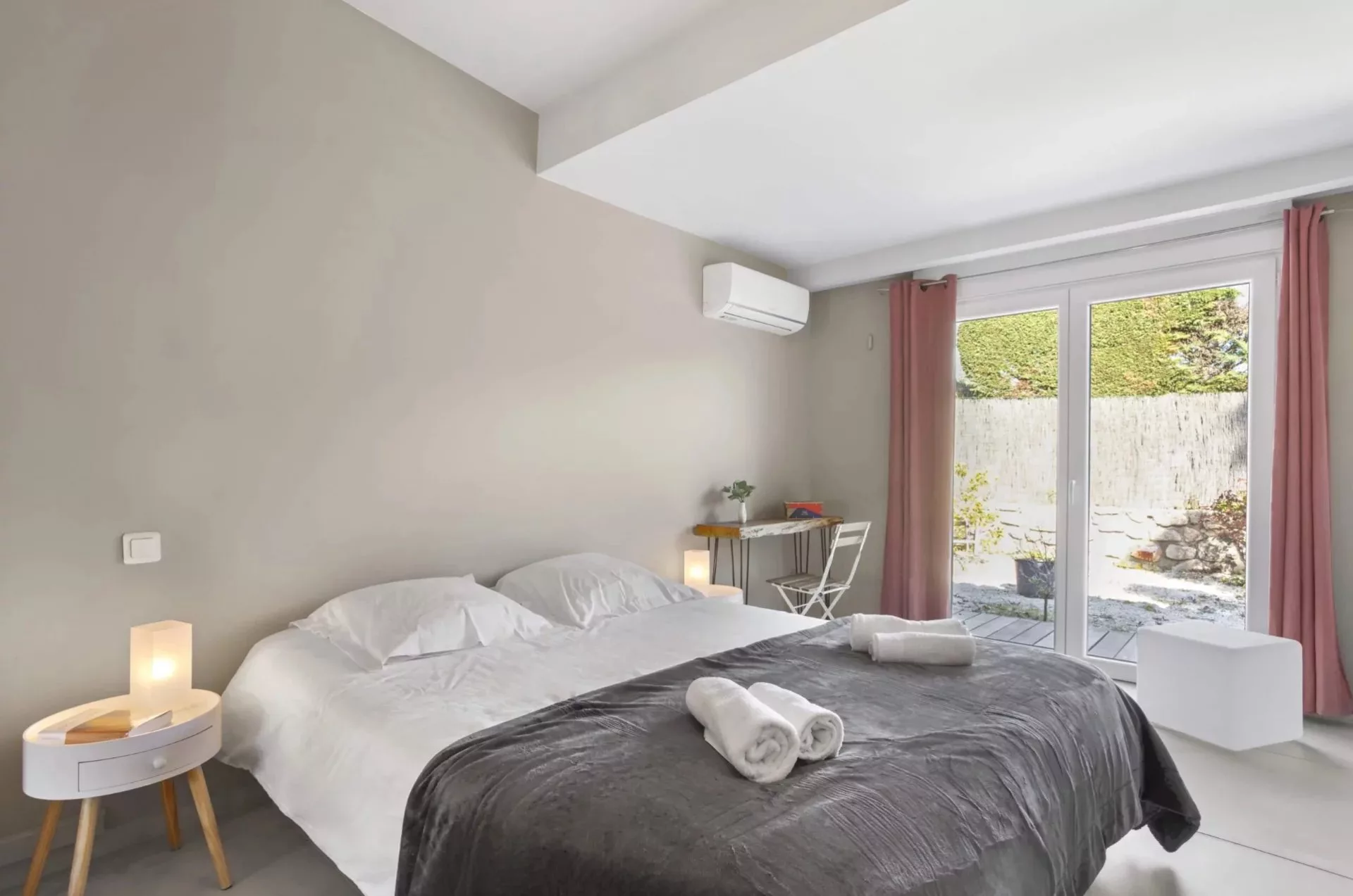 Elle dispose de 4 chambres climatisées (lits 160×200 cm, modulables en 80×200 cm, soit 8 couchages) et de 3 salles de bain modernes.