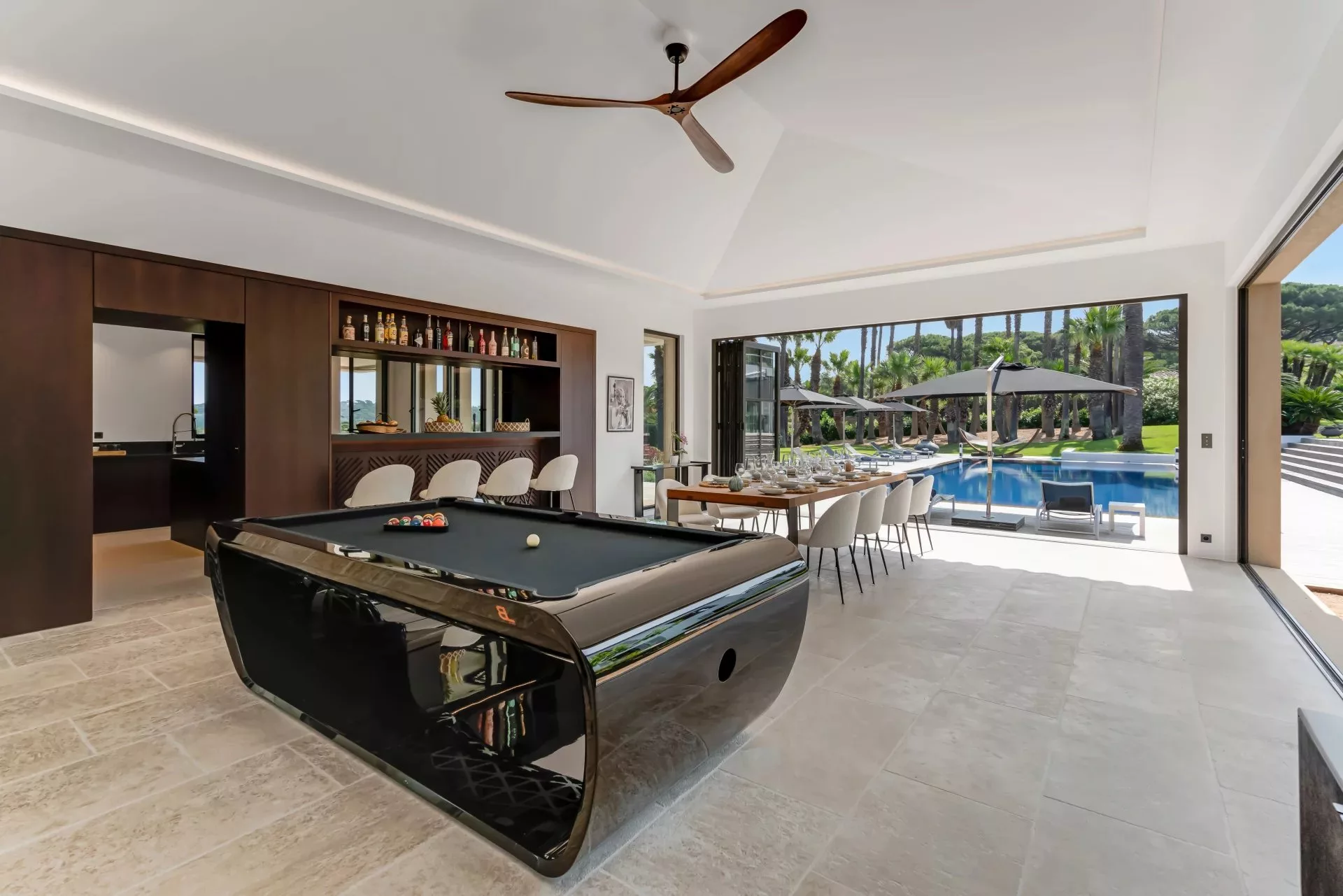 La deuxième villa, neuve terminée en 2025, se compose d'un spacieux salon ouvert sur la piscine(type orangeraie), d’un pool house avec SDB, Tv extérieure, un beau billard, une cuisine toute équipée pro, 4 chambres dont deux suites, + 2 de studios indépendants en extérieur, un grand spa en sous sol, avec Hamam, Sauna, et deux tables de massages, une salle de cinéma, une belle cave à vins, et un grand garage climatisé, pouvant accueillir plusieurs véhicules.