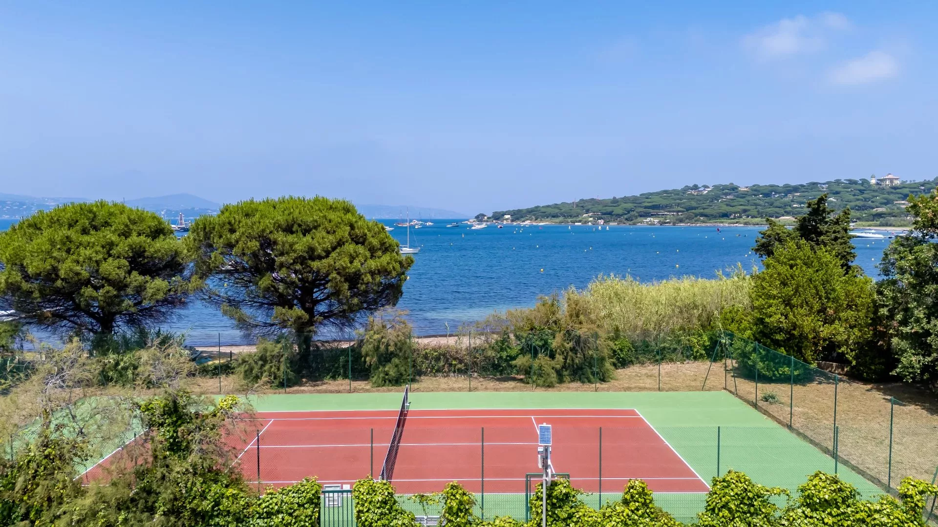 Terrain de tennis privé, situé a côté de la plage des Canoubiers, non loin de la propriété, en partage avec une petite résidence de trois villas, ne l’utilisant que rarement.