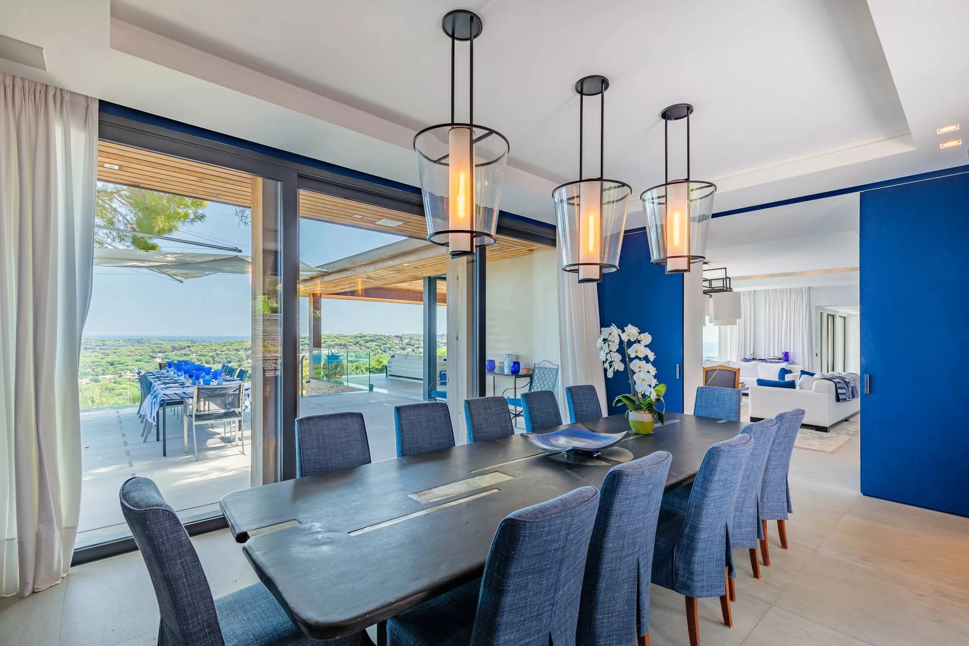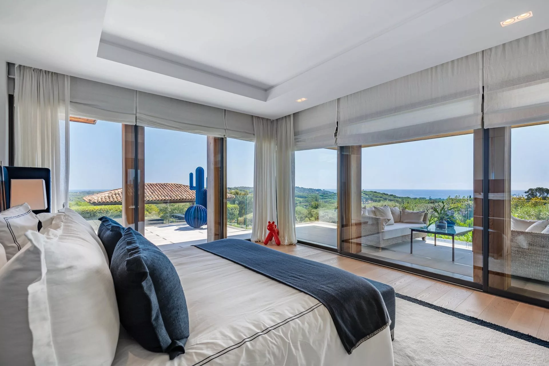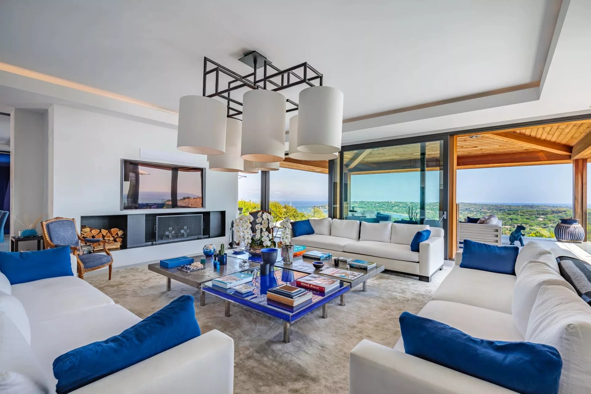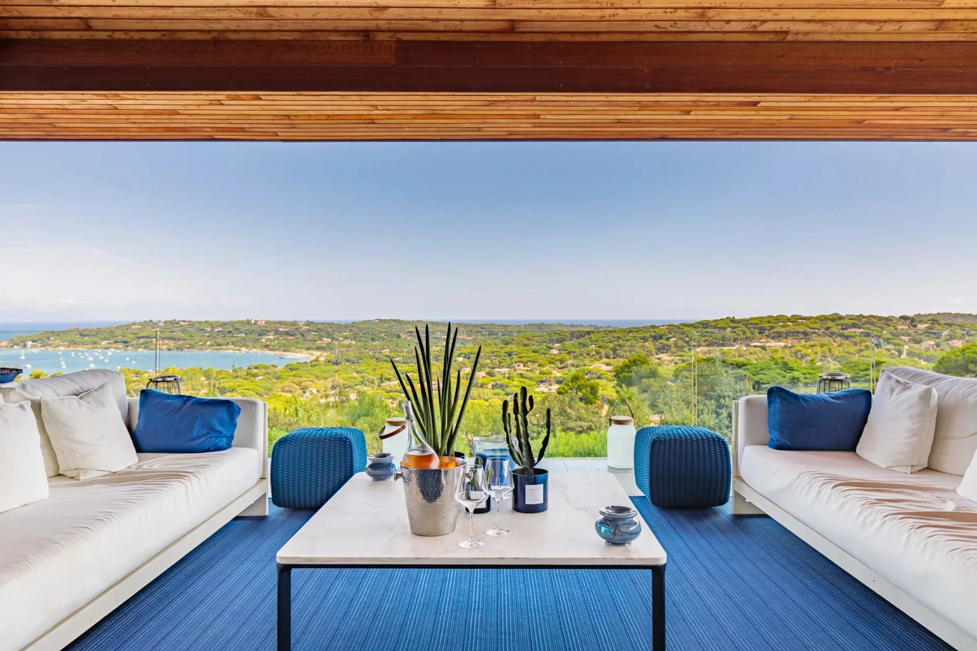 Villa exceptionnelle située sur les hauteurs de Saint-Tropez, à 5 minutes du centre et de la plage de Tahiti, offrant une vue mer panoramique parmi les plus spectaculaires de la presqu'île.