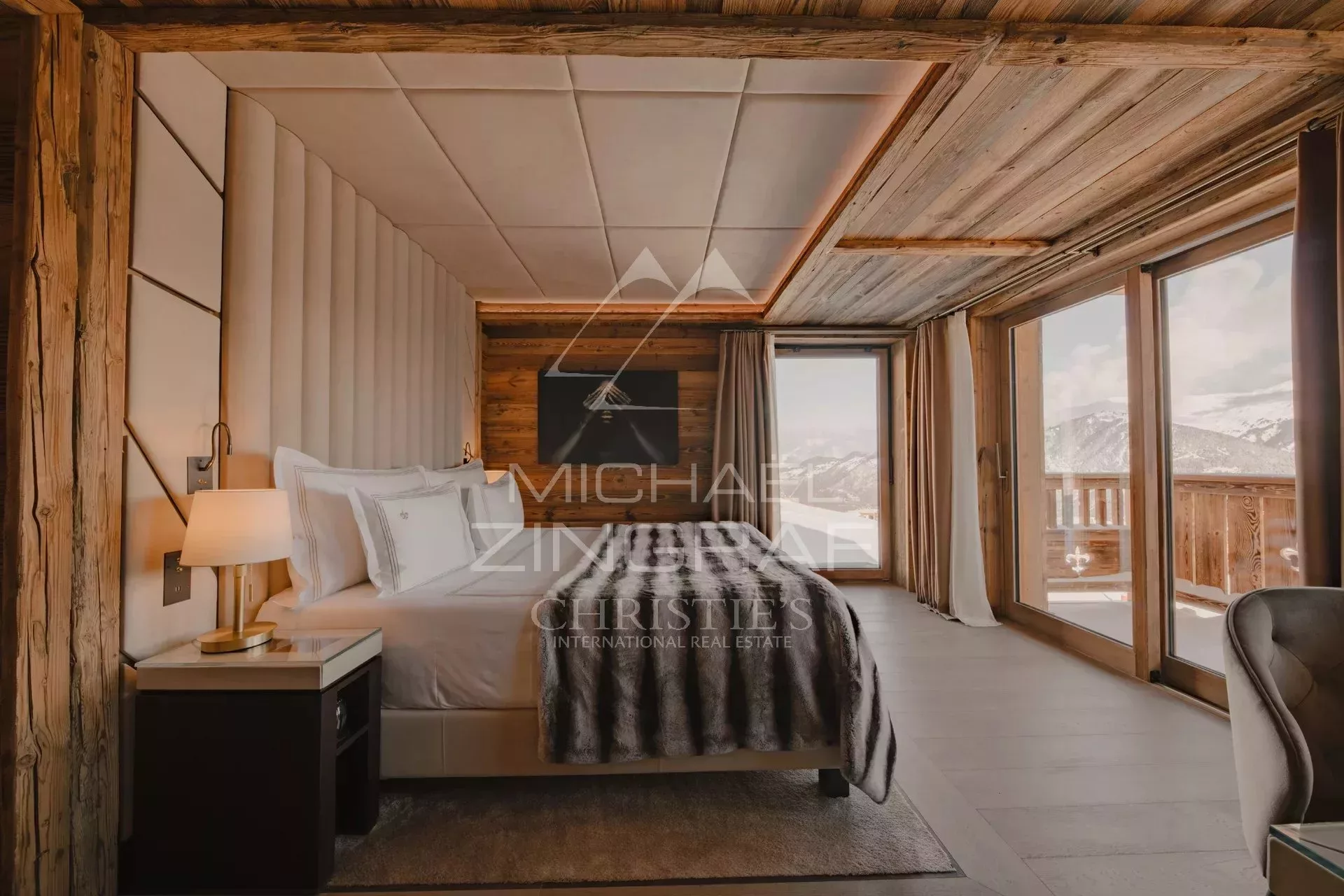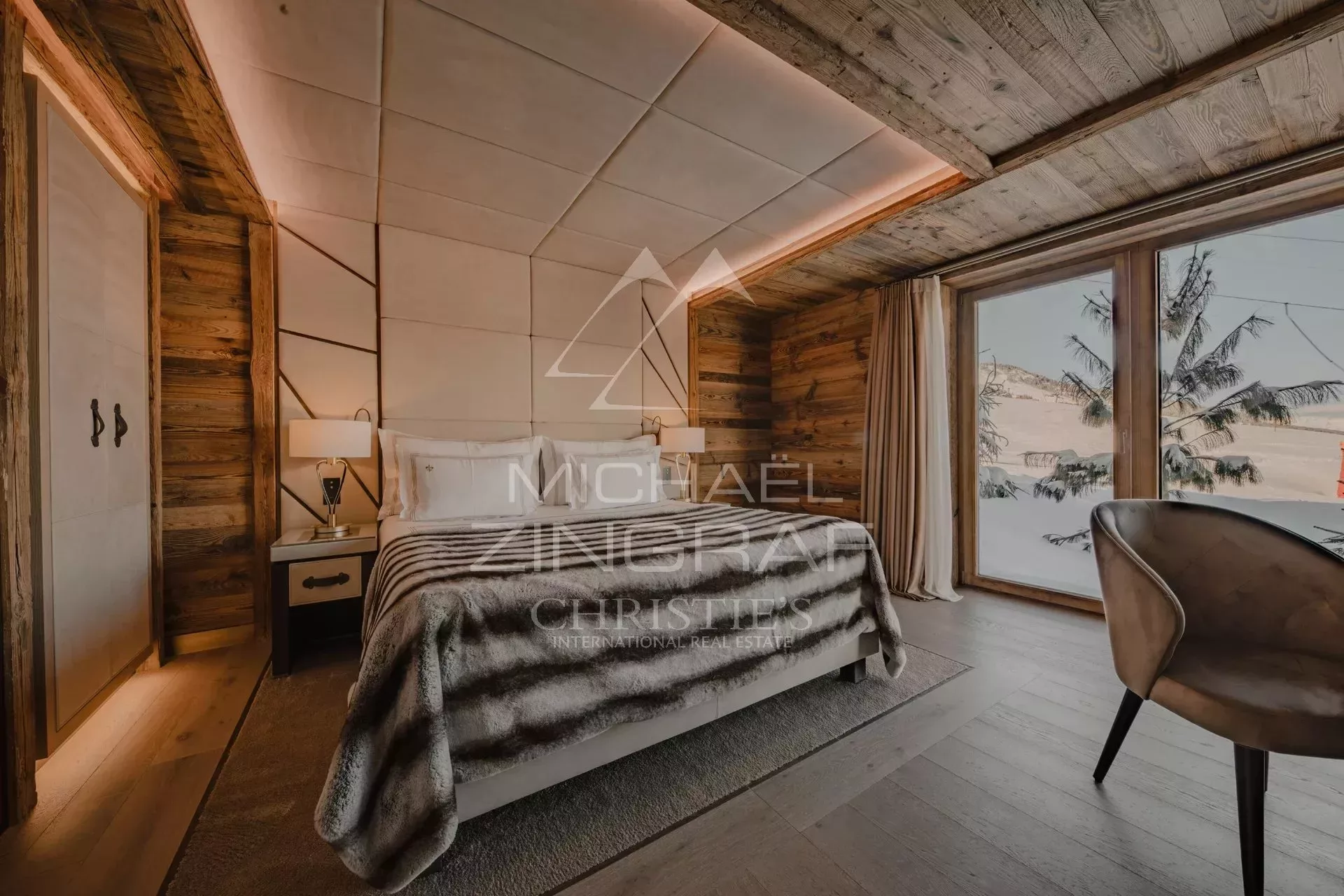 Au cœur de Courchevel Belvédère, ce chalet d’exception se dresse comme un refuge intime, à quelques pas seulement des pistes. Étendu sur trois étages et environ 180 m², il abrite cinq chambres avec salles de bain attenantes et dressings, pensées pour conjuguer confort et élégance.