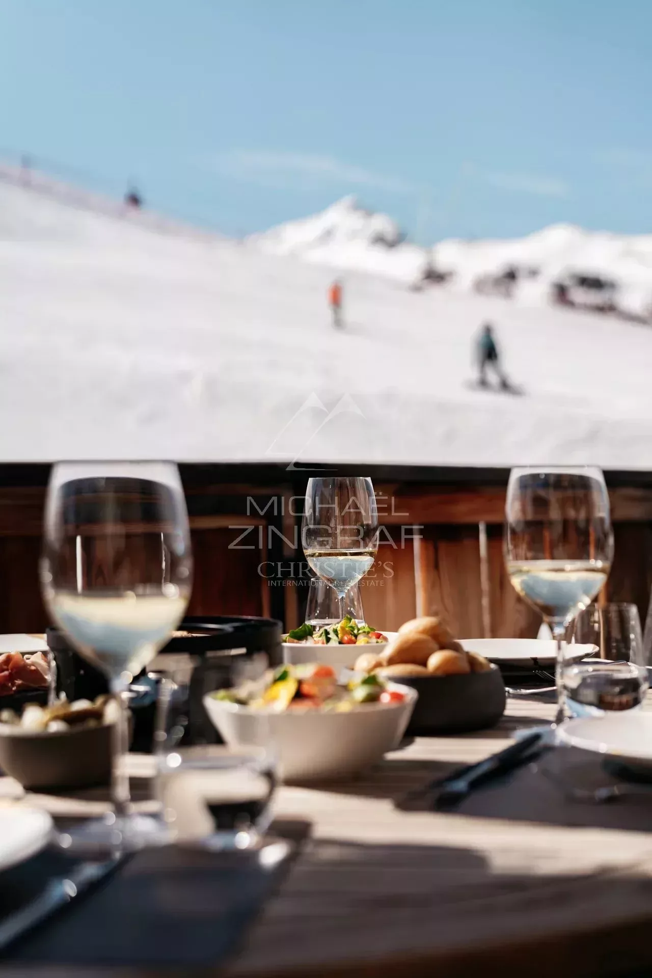 Chaque détail traduit un raffinement alpin discret : matériaux nobles, tons apaisants, lignes contemporaines et confort absolu. Les services haut de gamme – conciergerie, navette dans la station, ski room, petit-déjeuner servi en résidence et entretien quotidien – assurent une expérience sans fausse note.