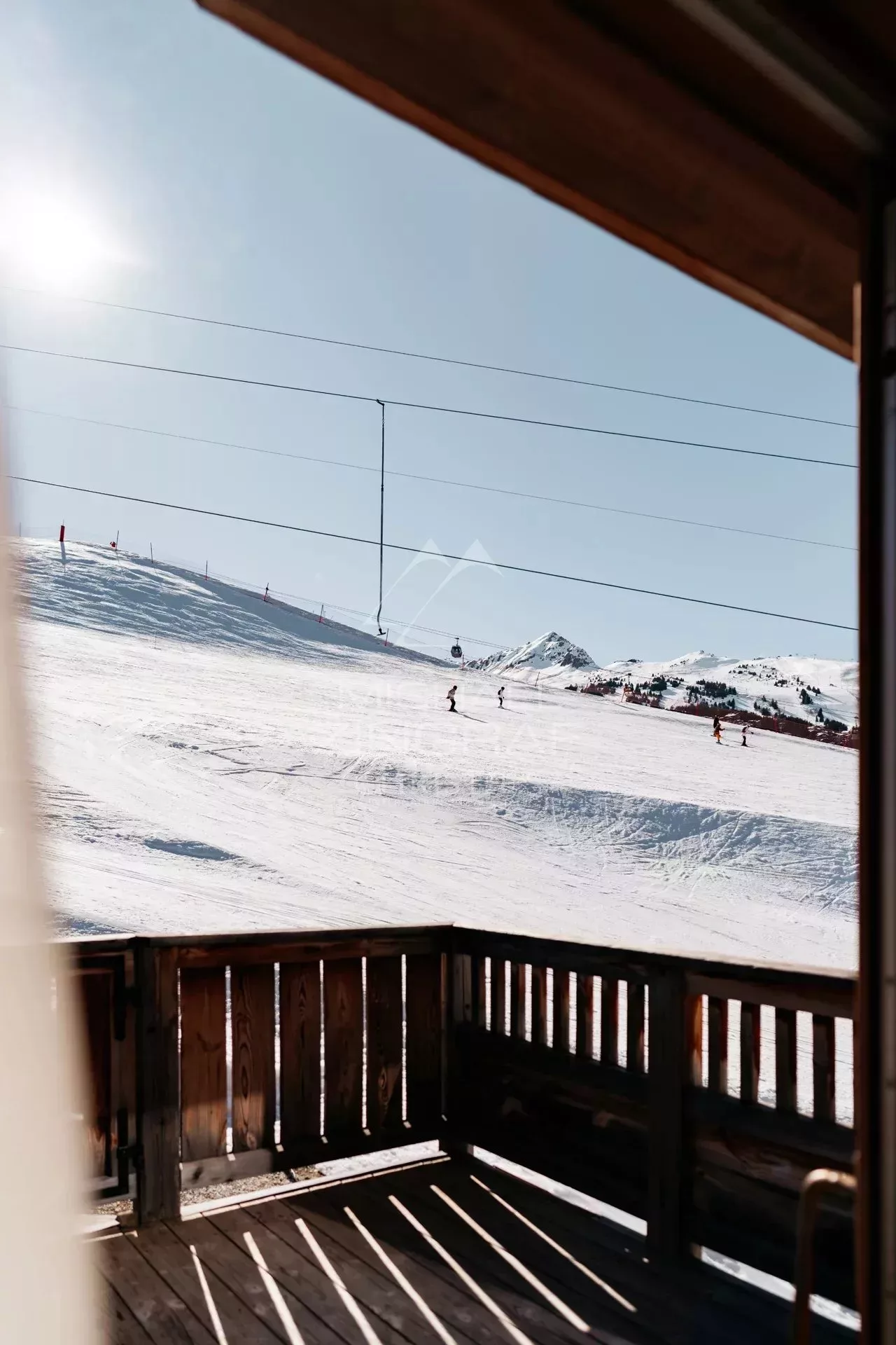 Chaque détail traduit un raffinement alpin discret : matériaux nobles, tons apaisants, lignes contemporaines et confort absolu. Les services haut de gamme – conciergerie, navette dans la station, ski room, petit-déjeuner servi en résidence et entretien quotidien – assurent une expérience sans fausse note.